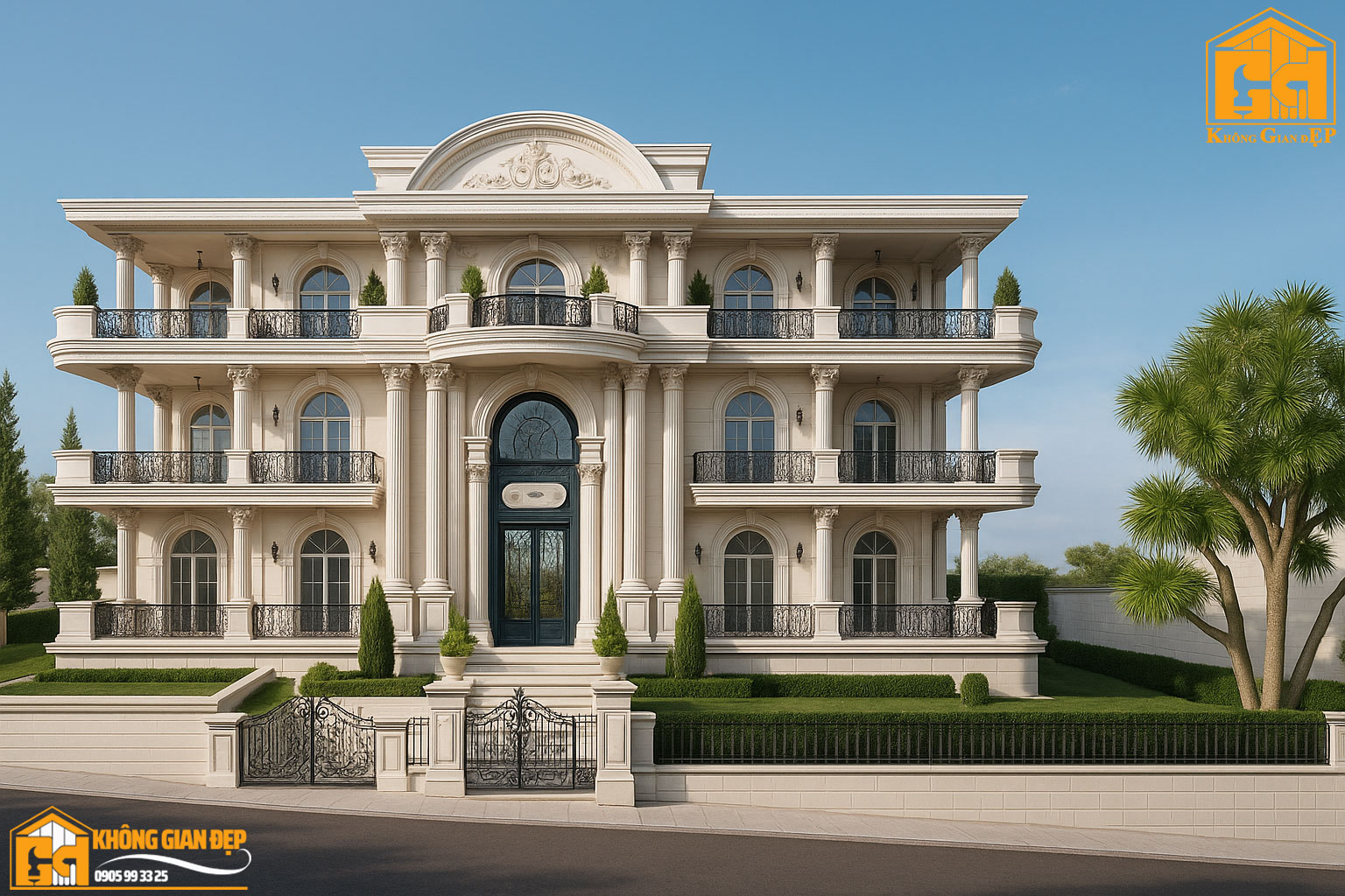 Bạn đang tìm kiếm một mẫu biệt thự 3 tầng tân cổ điển sang trọng, chuẩn phong cách châu Âu, kết hợp tinh tế giữa vẻ đẹp cổ điển và công năng hiện đại? Hãy cùng khám phá mẫu thiết kế mới nhất do Công Ty Cổ Phần Không Gian Đẹp thực hiện – một đơn vị chuyên thiết kế nhà tại Đà Nẵng với hàng trăm công trình thành công.