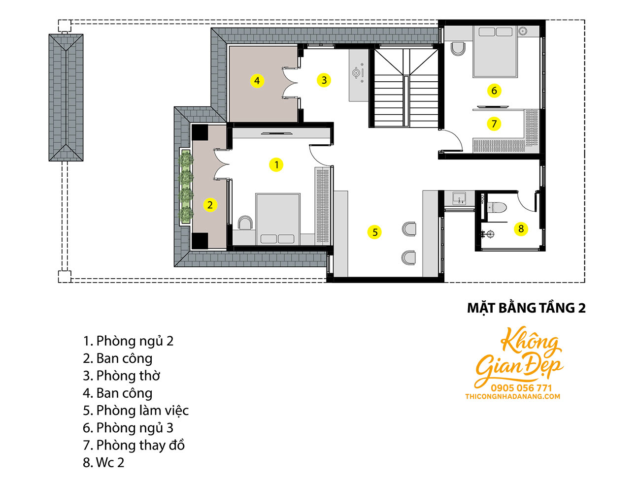 Mặt bằng tầng 2 biệt thự hiện đại