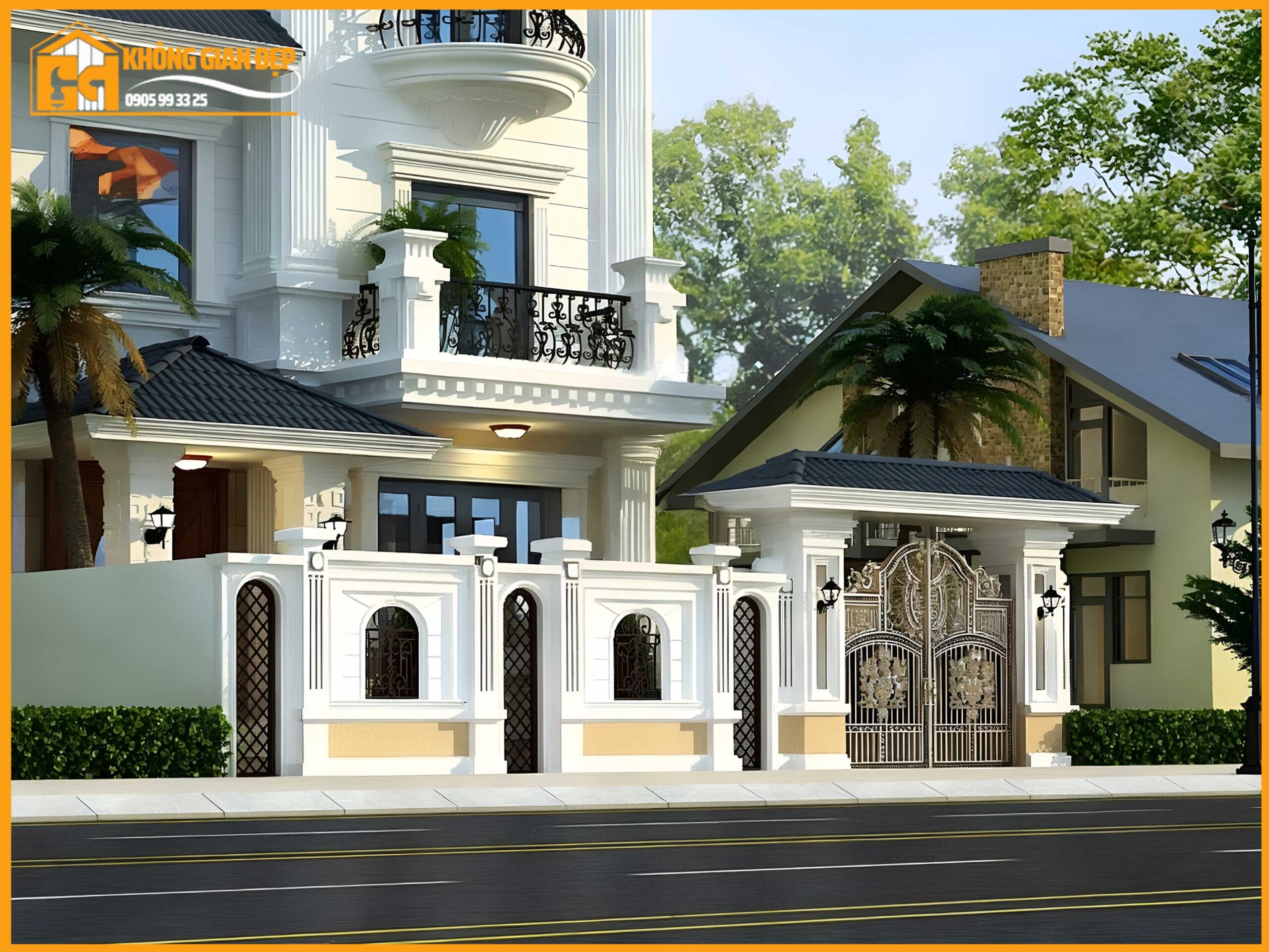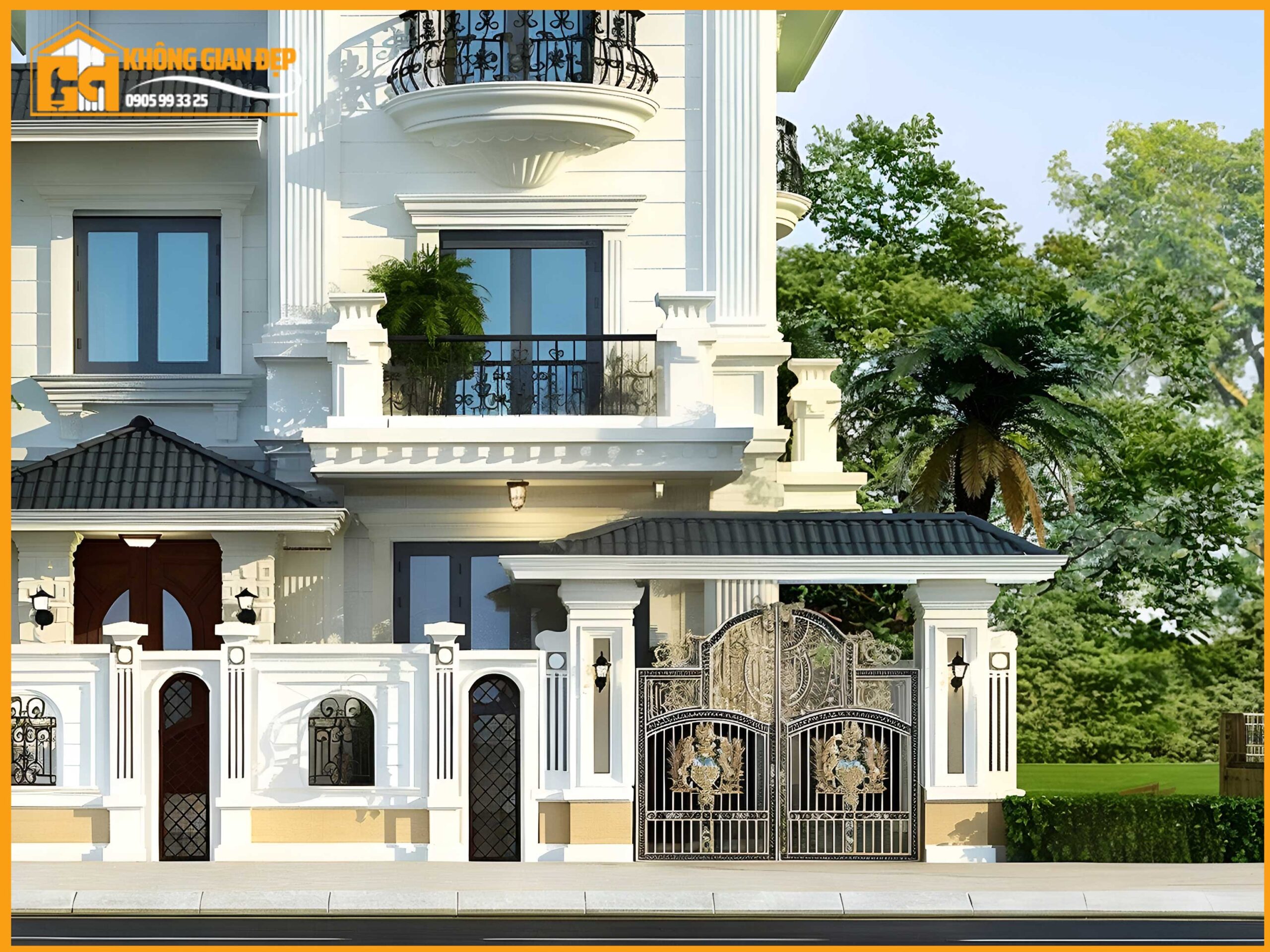 Góc phối cảnh mặt tiền tuyệt đẹp của biệt thự 3 tầng
