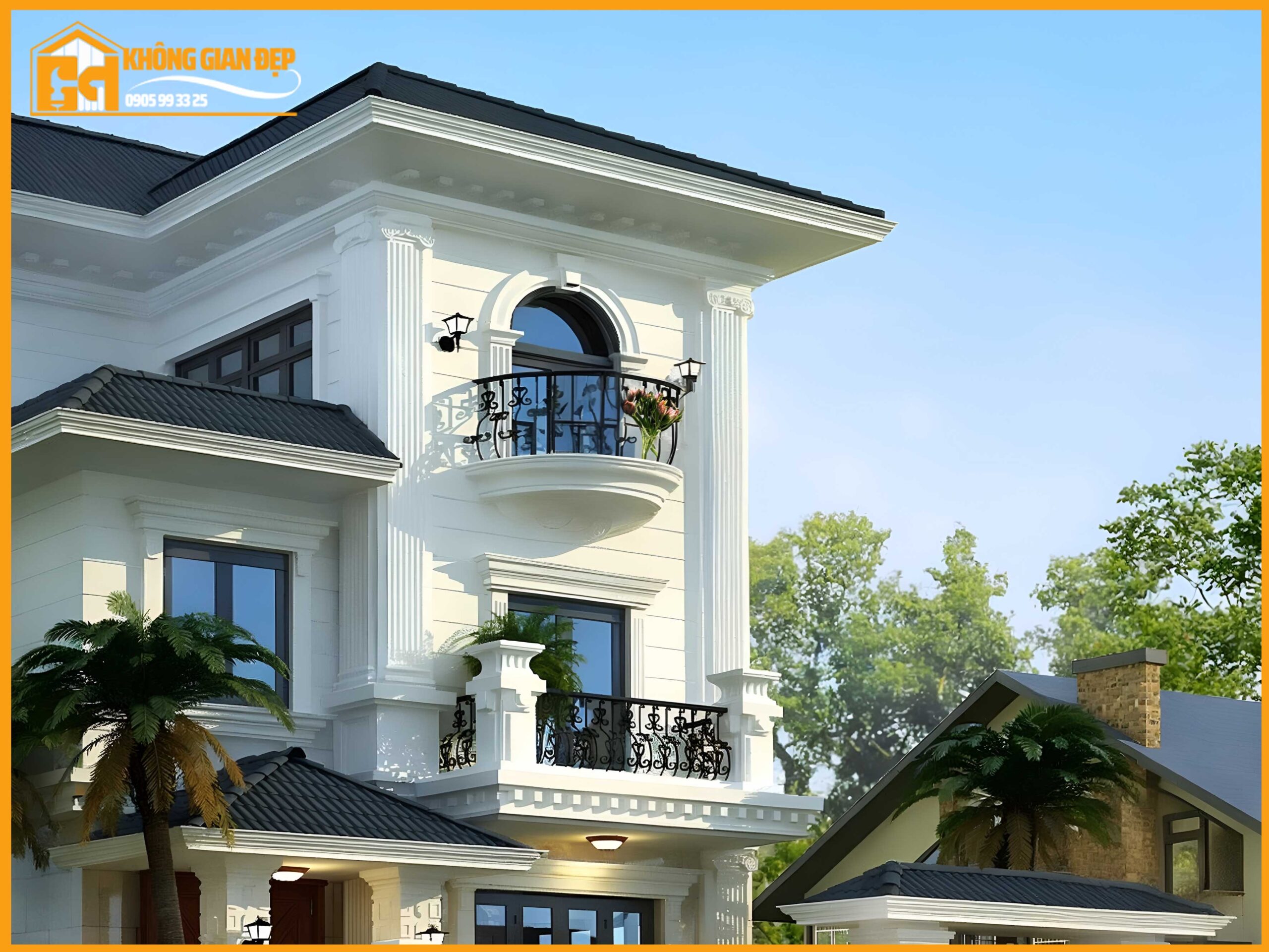 Góc chi tiết phối cảnh mặt tiền biệt thự 3 tầng tân cổ điển