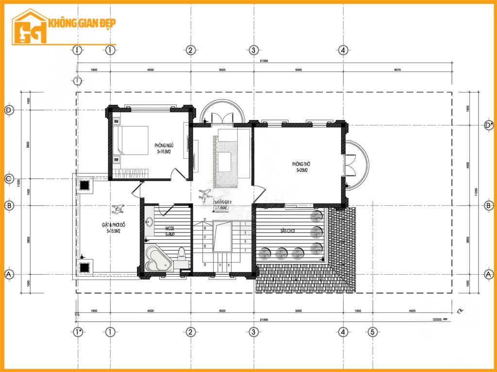 • Khu giặt & phơi đồ (5.25m²): Bố trí riêng biệt và kín đáo.