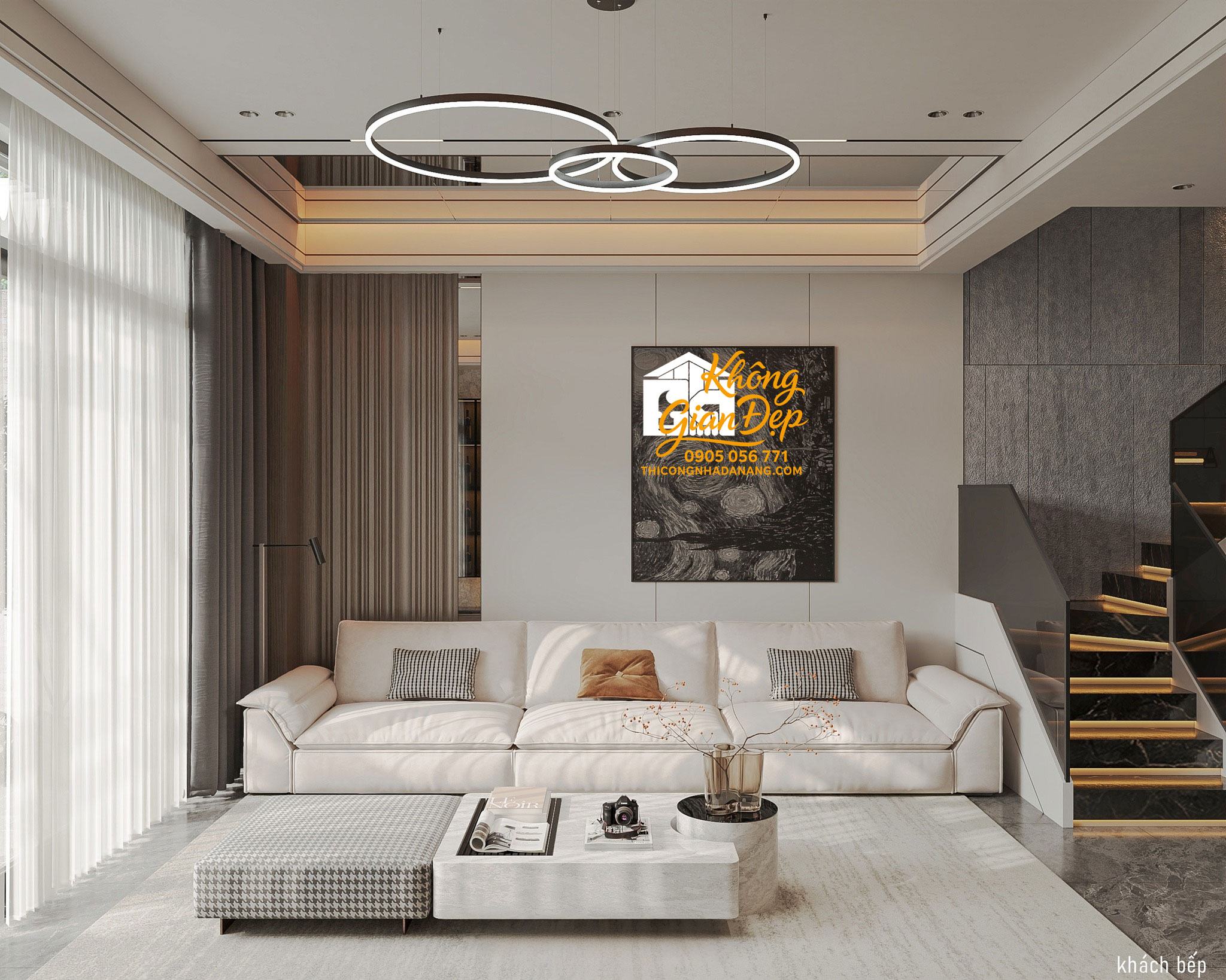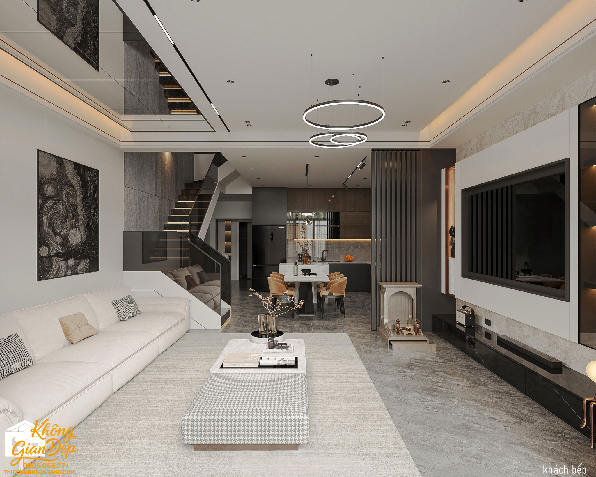 Với lợi thế chiều ngang 6m, chúng tôi đã tạo ra một không gian nội thất mở hoàn toàn, xóa bỏ cảm giác chật hẹp thường thấy của nhà ống. Đây là thế mạnh đặc biệt trong dịch vụ thiết kế nhà tại Đà Nẵng của chúng tôi.