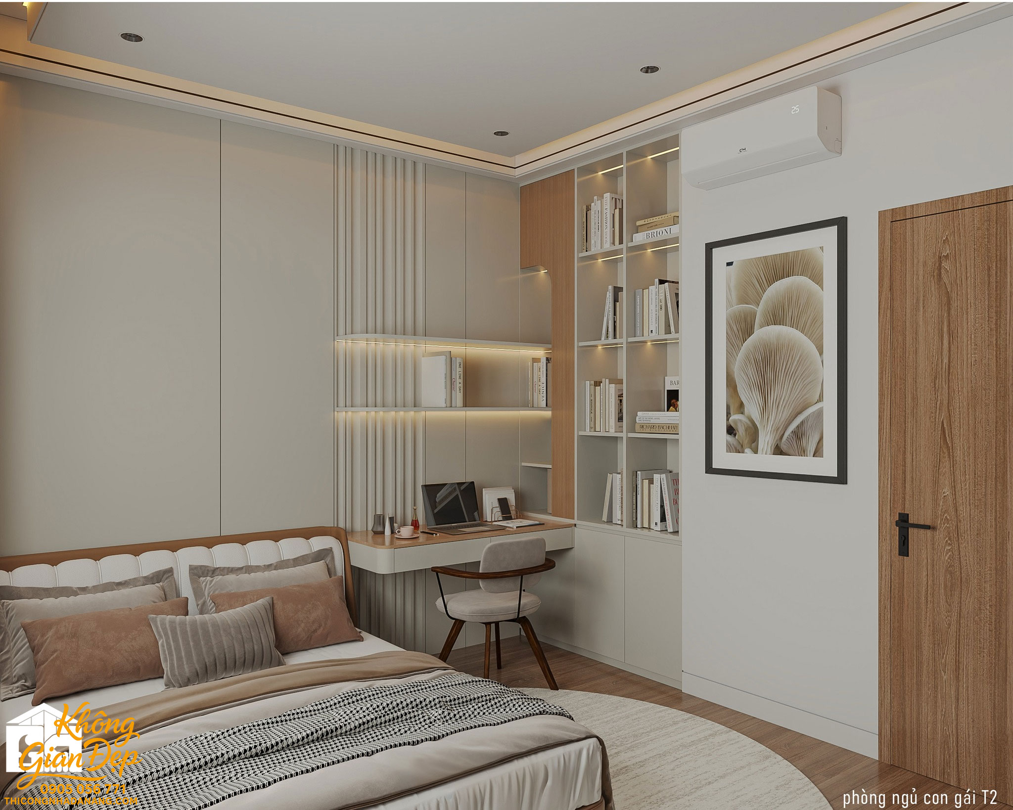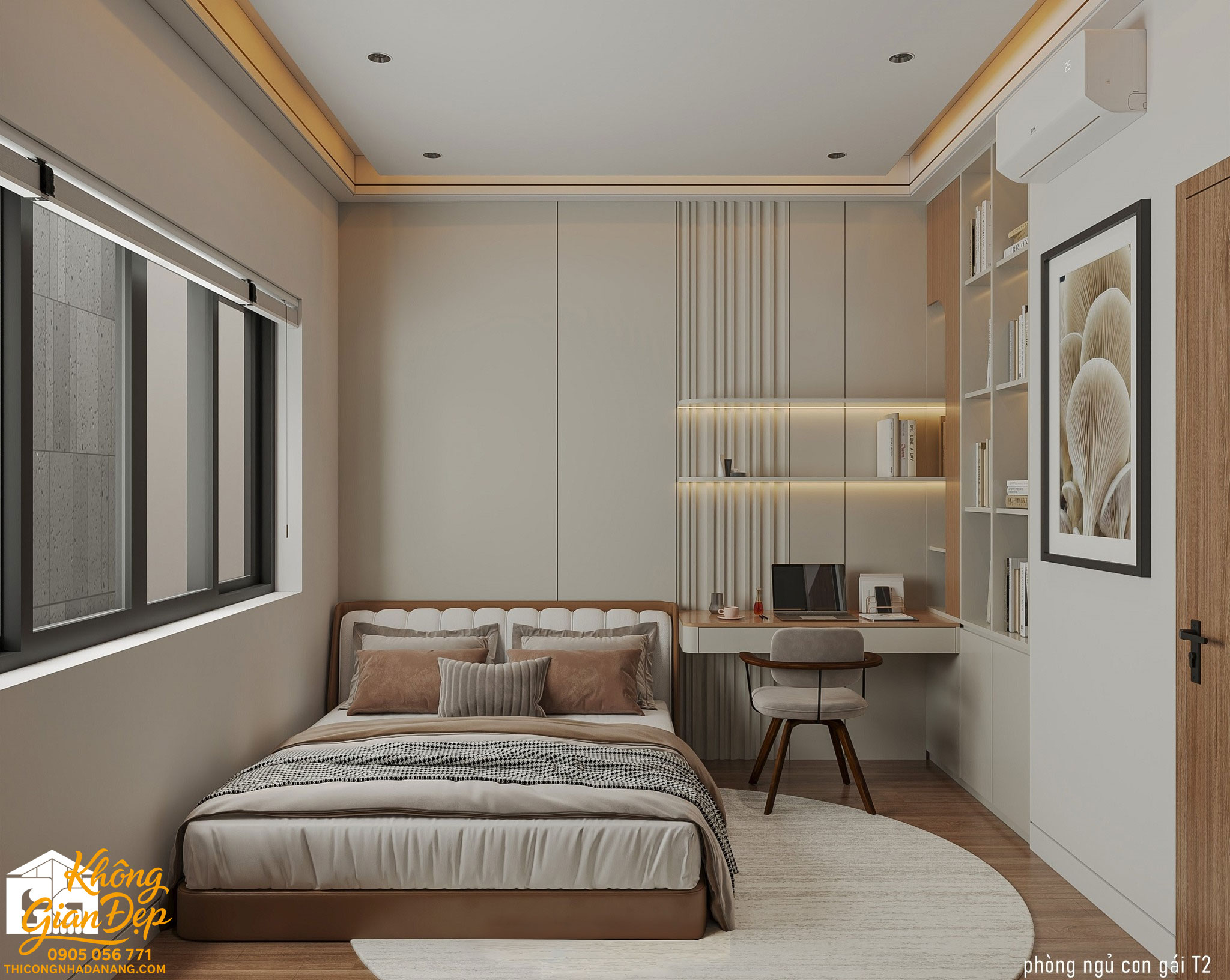 Ngôi nhà còn bố trí 1 phòng ngủ tầng 1 (rất quan trọng cho gia đình có người lớn tuổi) và các phòng ngủ cho con cái trên tầng 2, cùng phòng sinh hoạt chung ấm cúng.