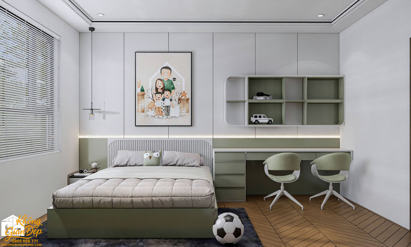 Ngôi nhà có 2 phòng ngủ chính, mỗi phòng là một không gian riêng tư được thiết kế tỉ mỉ, đảm bảo sự thoải mái cho mọi thành viên.