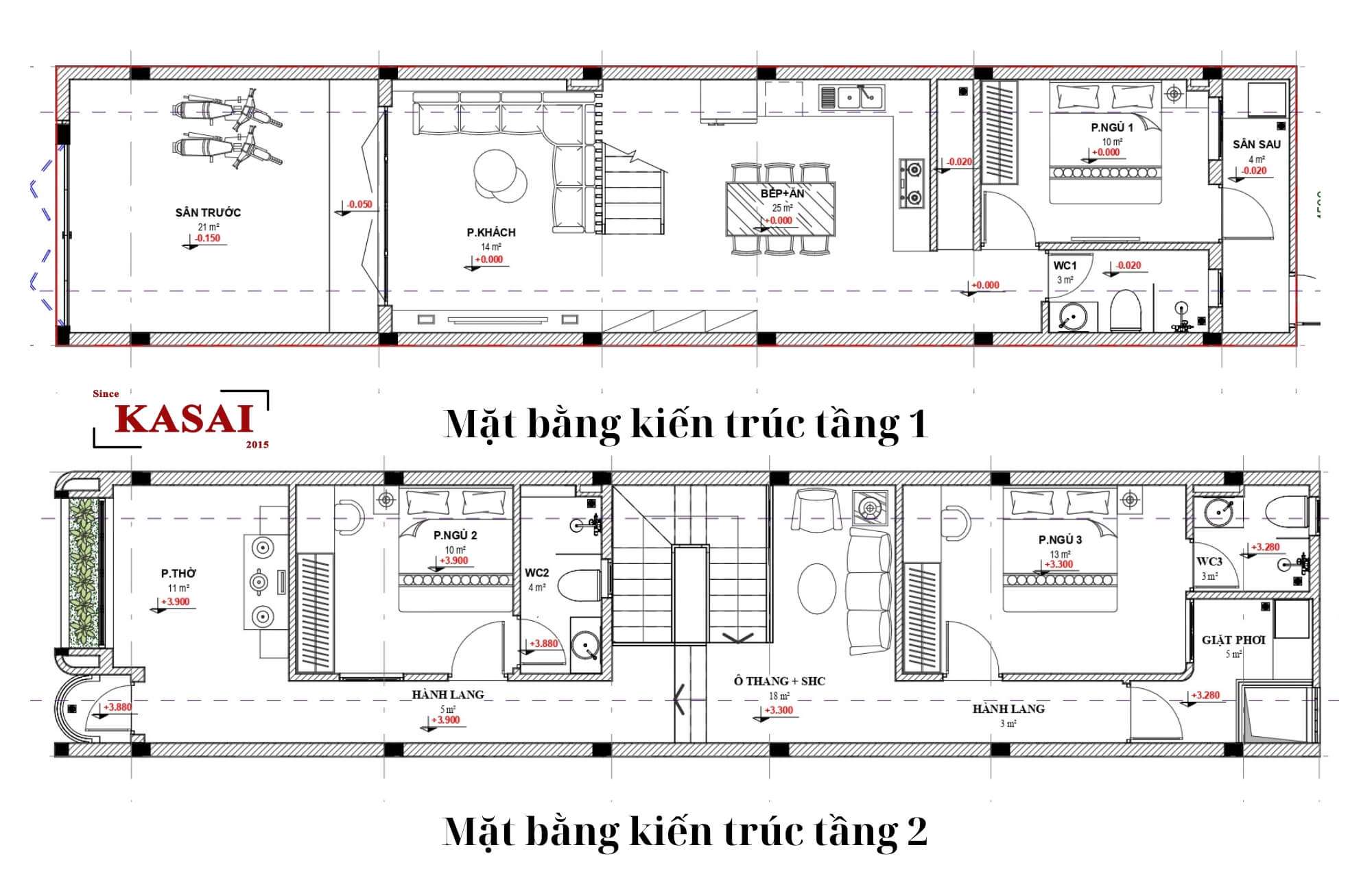 - Tầng 2: 01 Phòng ngủ master (có WC riêng, ban công), 01 phòng ngủ phụ (có WC riêng).
