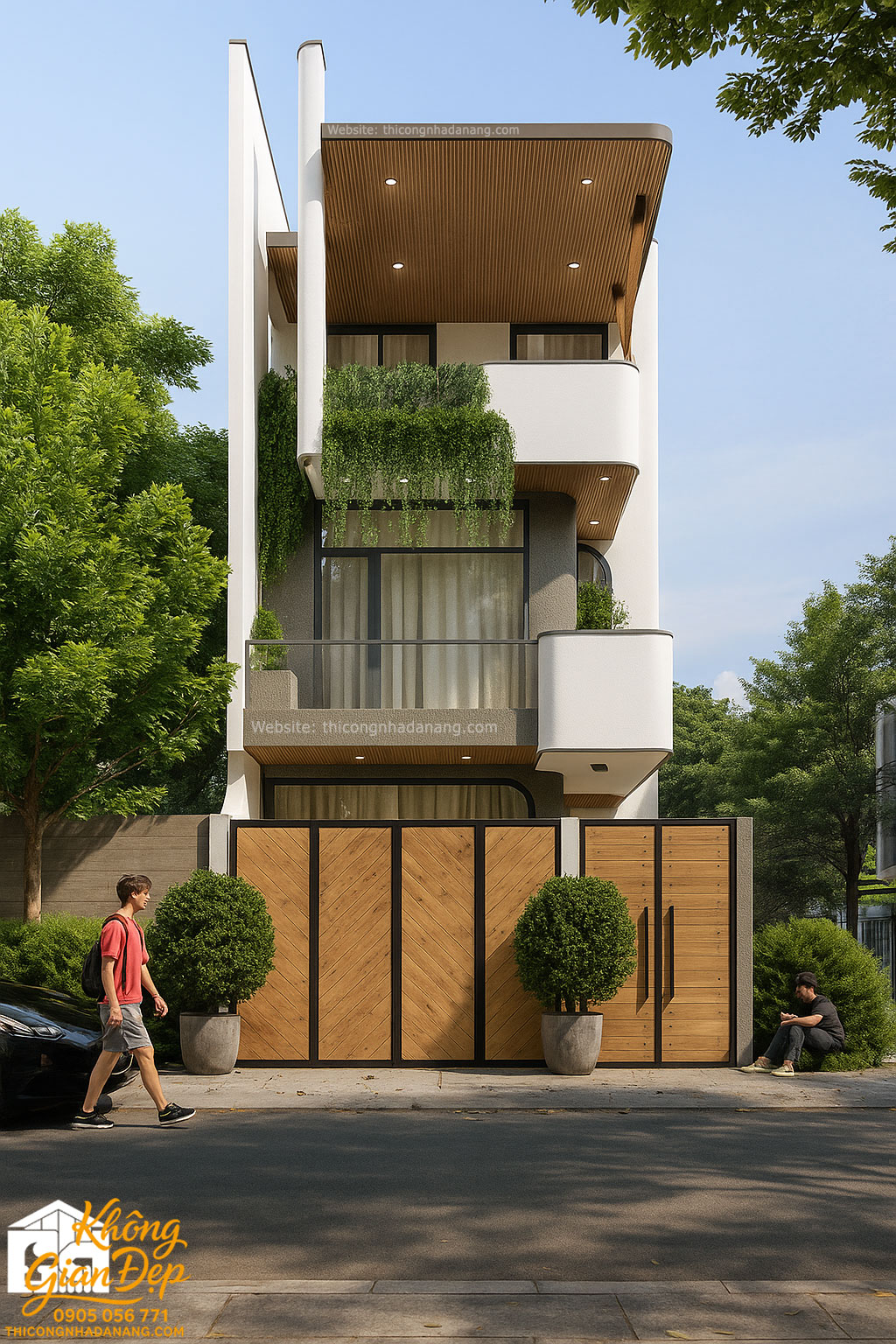 Mẫu nhà phố này là sự giao thoa hoàn hảo giữa các yếu tố kiến trúc, vật liệu, ánh sáng và không gian xanh, tạo nên một tổng thể hài hòa và cuốn hút.