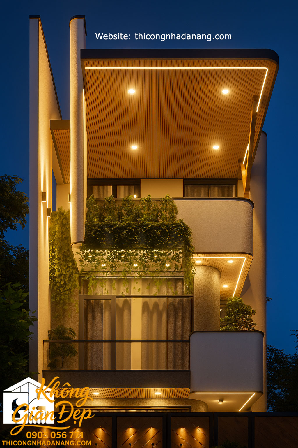 Điểm nhấn đầu tiên chính là phong cách Tân Hiện Đại độc đáo. Thay vì những khối hộp cứng nhắc, các kiến trúc sư đã khéo léo kết hợp: