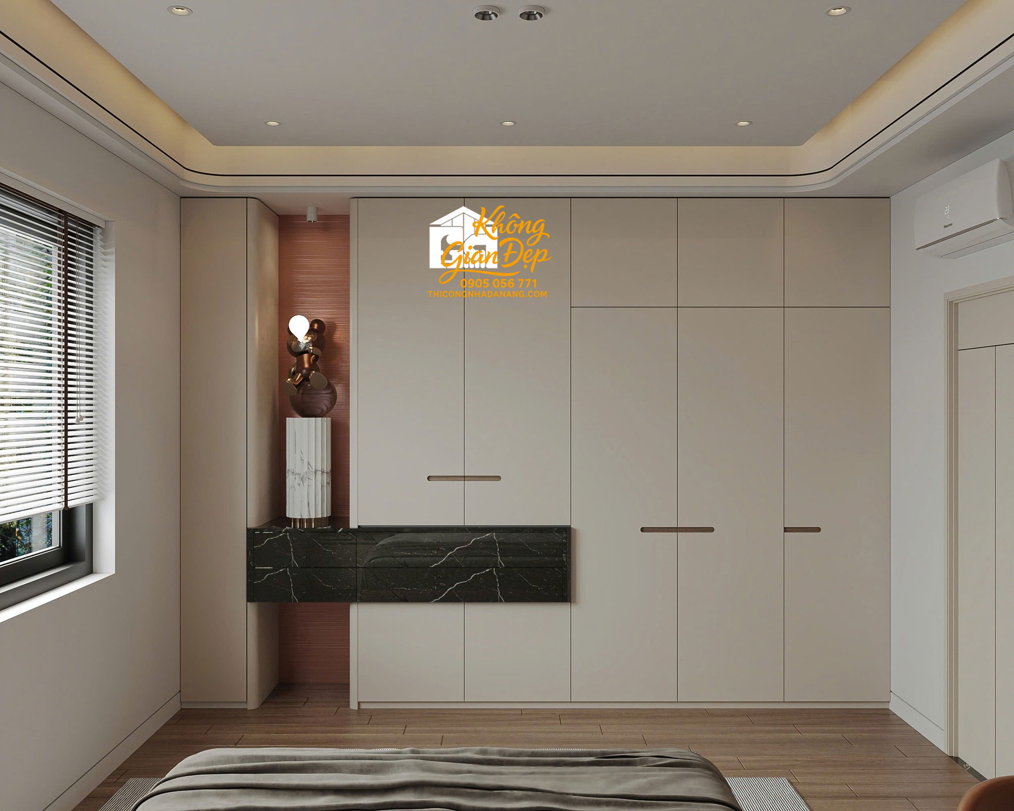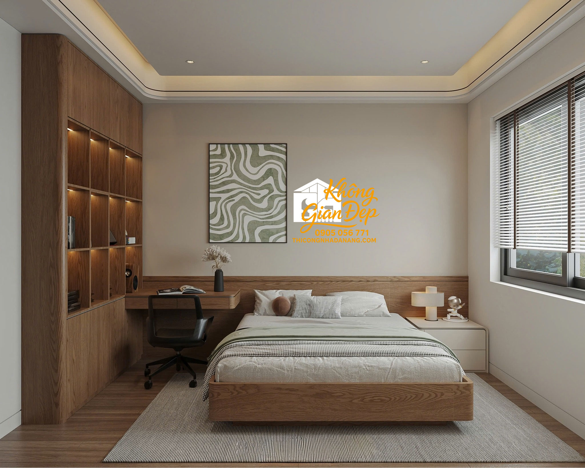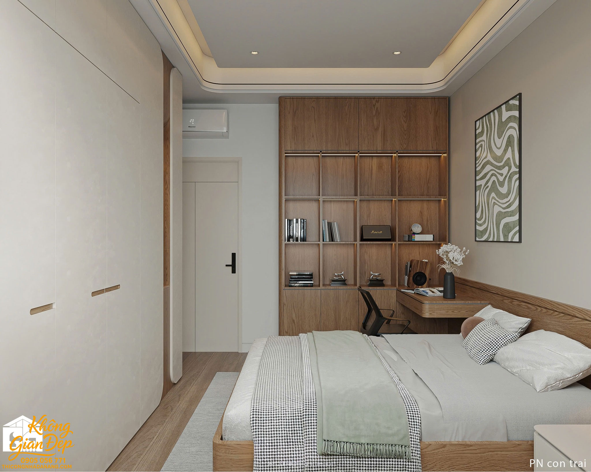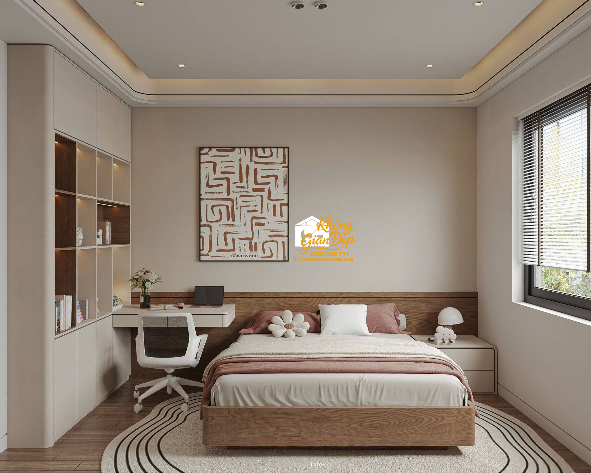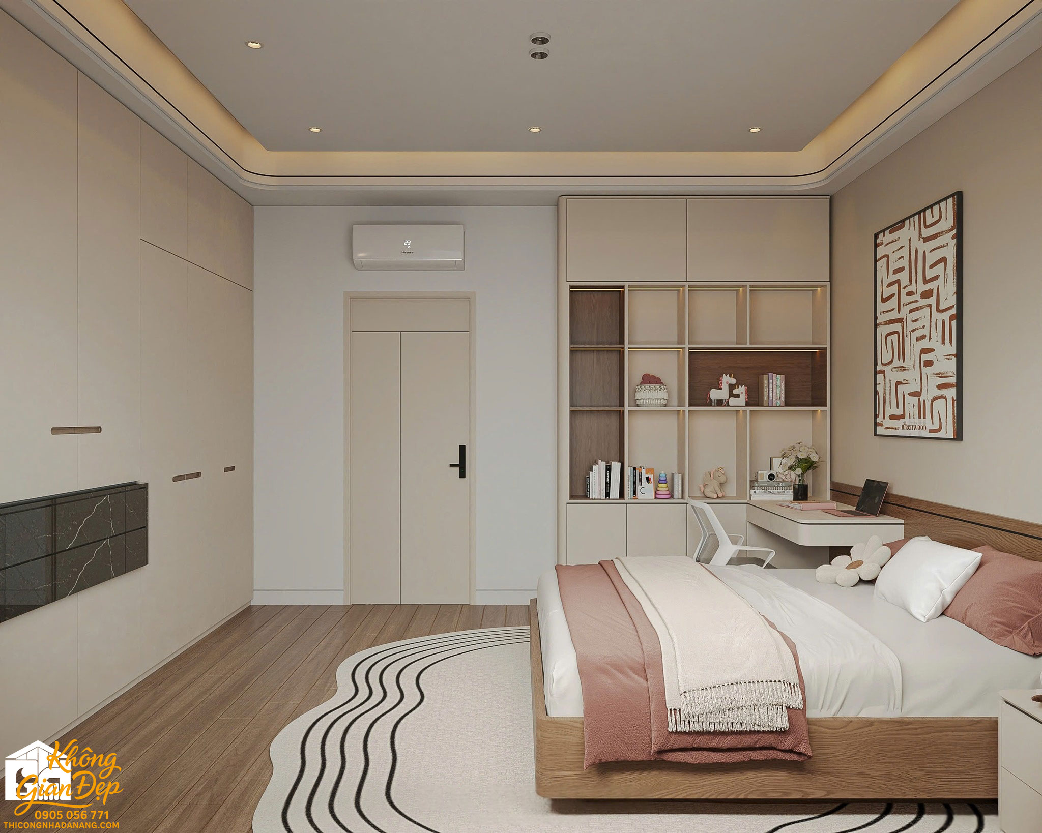 • Phòng Ngủ Con: Ưu tiên màu sắc tươi sáng, hệ tủ kịch trần để tối đa không gian lưu trữ đồ chơi và sách vở.