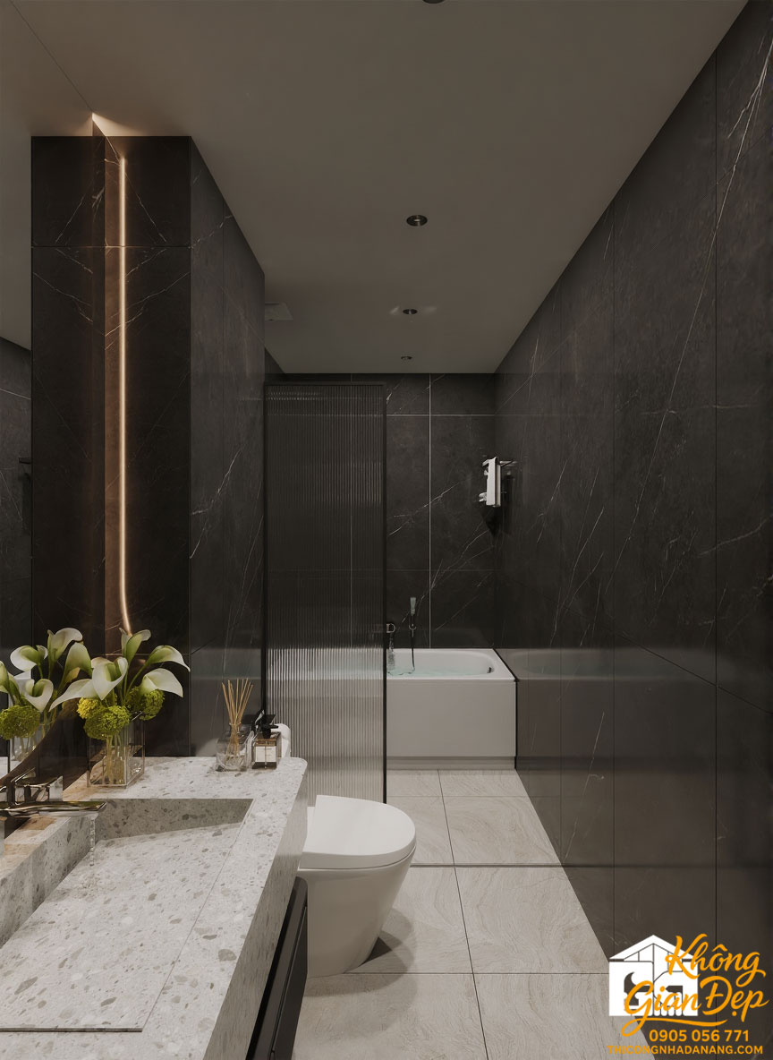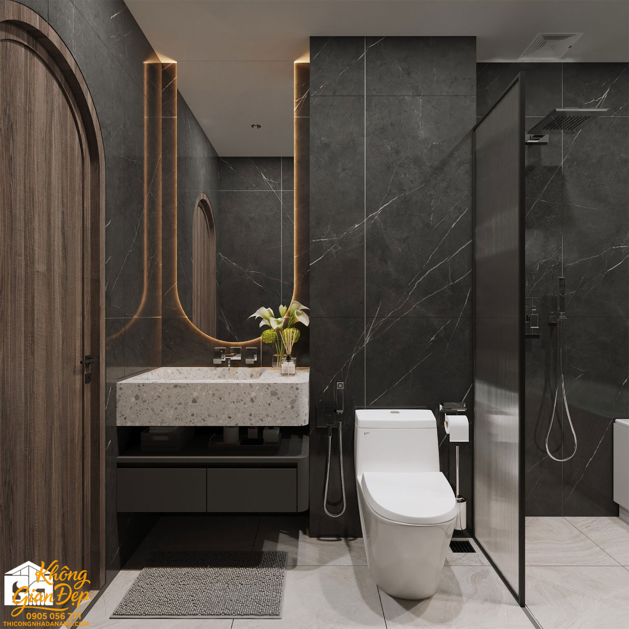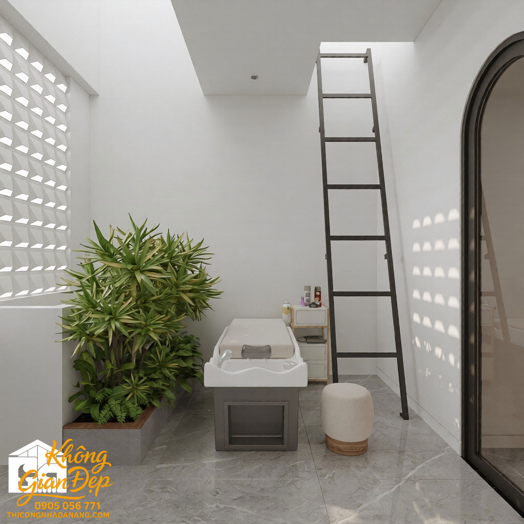 Điểm “ăn tiền” nhất của mẫu thiết kế nhà phố 3 tầng này chính là việc tích hợp phòng gội đầu thư giãn ngay tại nhà. Sau một ngày làm việc căng thẳng, không gì tuyệt vời hơn được tận hưởng dịch vụ Spa trong chính tổ ấm của mình.
